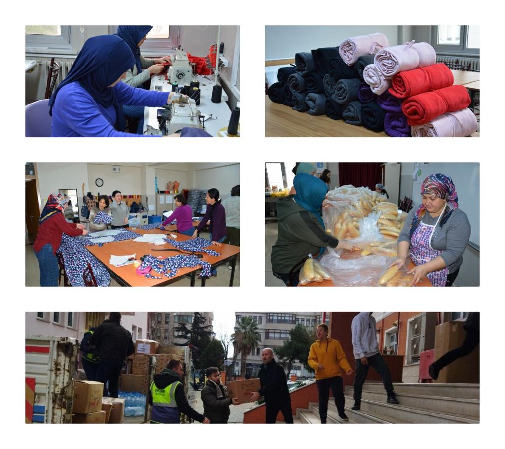 Tüm kurumların imkanlarını adeta seferber ettiği çalışmalar kapsamında, İl genelinde bulunan Halk Eğitimi Merkezi Müdürlükleri tarafından İlimize gelen afetzedelere yönelik faaliyet gösteren sosyal marketlerde depremzede vatandaşların kullanımı için değerlendirilmek üzere uyku tulumu ve giysi gibi ürünler hazırlanıyor.