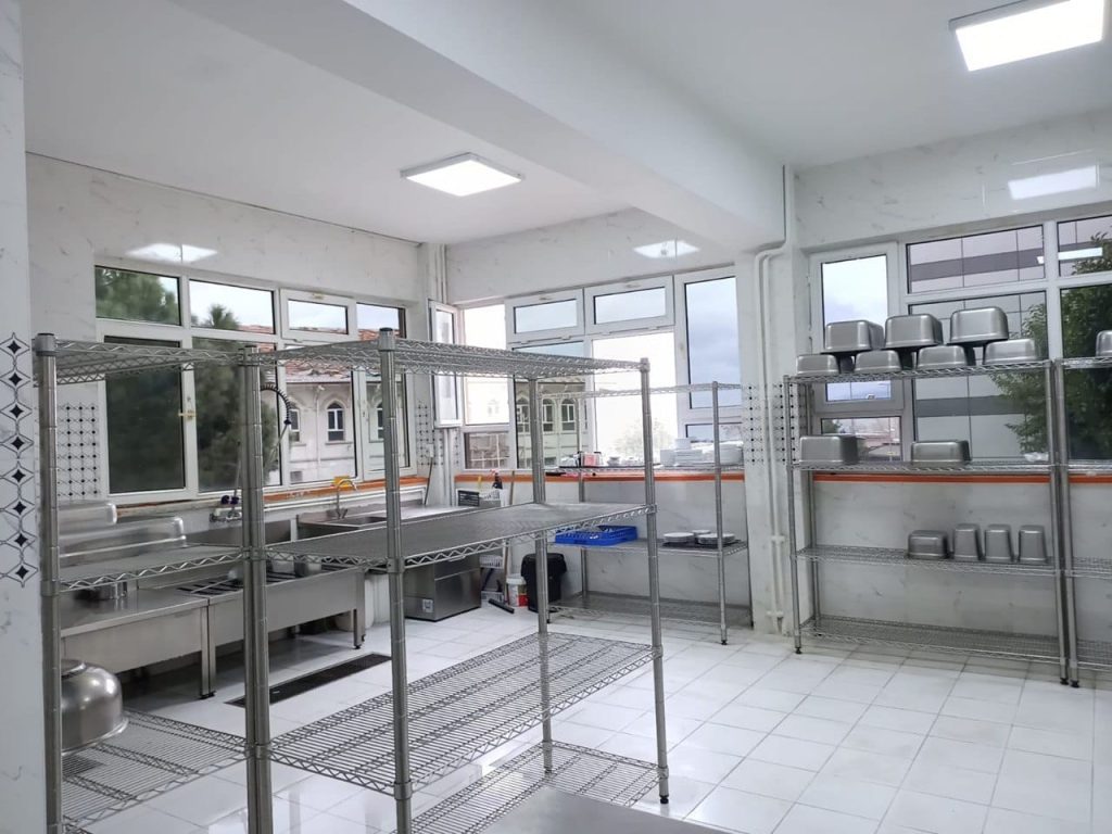 Bandırma Hafsa Sultan Mesleki ve Teknik Anadolu Lisesi Yiyecek İçecek Hizmetleri Alanı öğrencileri, okulun yemekhanesinde iki stajyer öğretmen, iki usta öğretici ve iki öğretmen gözetiminde günlük 1500 kişilik yemek yapıyor.