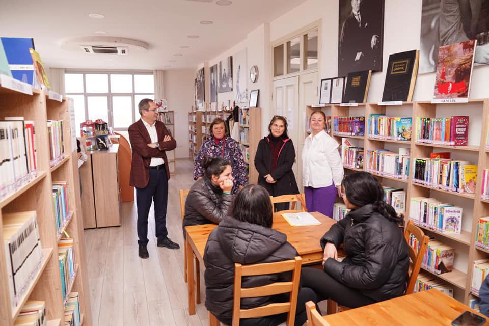 Ayvalık Belediye Başkanı Mesut Ergin, 59. Kütüphane Haftası kapsamında 19 Mayıs Cihan Şişman Gençlik Merkezi’ndeki Çağdaş Yaşam Türkel Minibaş Gençlik ve Çocuk Kütüphanesi’ni ziyaret eden lise öğrencileriyle bir araya geldi.