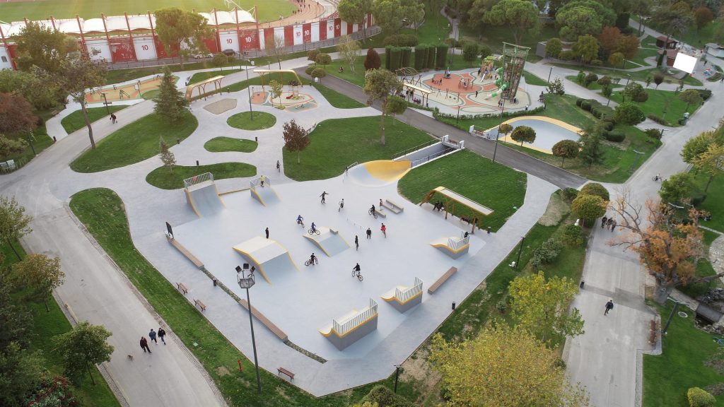 Kamera sistemiyle güvenli hale getirilen Skate Park’ta gençler rahatlıkla kayarken, enerjilerini yüksek tutabilmeleri için bluetoothlu bağlantı ile ücretsiz wifi sistemini hazır hale getirildi. Gençlerin bu alanı daha rahat ve güvenli bir şekilde kullanmalarını sağlamak amacıyla yapılan planlamada; hızlanma rampaları, mega quater, quater dönüş ve girişleri için rampalar, roll-in, funbox dediğimiz kayma kutuları ve çubukları kullanıldı.