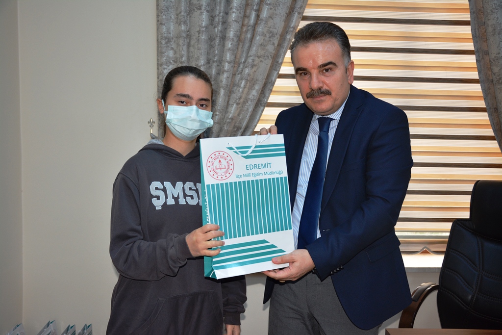 Edremit Kaymakamı Ahmet Odabaş, Balıkesir Valiliği himayelerinde yürütülen BİGEP kapsamında yapılan izleme ve değerlendirme sınavında ilçemizde dereceye giren öğrencilere ödüllerini takdim etti.