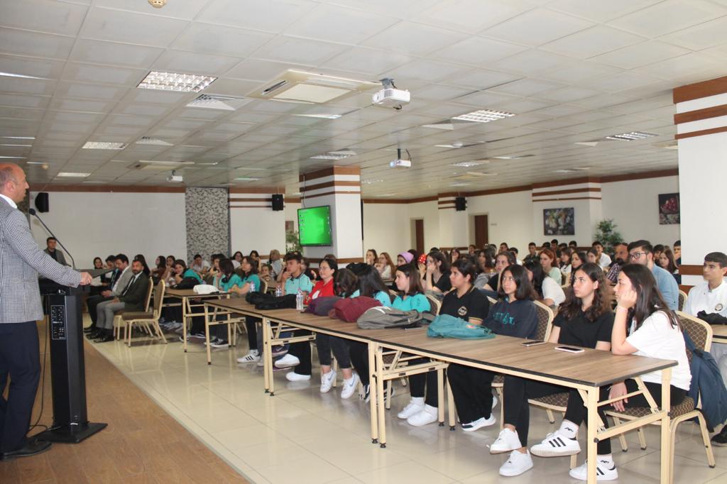 Ayvalık İlçe Milli Eğitim Müdürü Güner Bahadır ile Cunda Mesleki ve Teknik Anadolu Lisesi Müdürü Abdülaziz Yük, okul müdürleri, öğretmenler ve öğrencilerin katılımıyla gerçekleştirilen etkinlikte, BUBFA Dekanı Prof. Dr. M. Oğuzhan İlban ile Dekan Yardımcıları Doç. Dr. Ali Solunoğlu ve Dr. Öğr. Üyesi Oğuzhan Dülgaroğlu, fakülte ve Turizm İşletmeciliği ile Gastronomi ve Mutfak Sanatları bölümleri hakkında bilgiler paylaştı. Proje kapsamında; Doç. Dr. Ali Solunoğlu Yiyecek-İçecek Hizmetleri alanı öğrencilerine “Gastronomi ve Sokak Lezzetleri”, Dr. Öğr. Üyesi Oğuzhan Dülgaroğlu ise Konaklama ve Seyahat Hizmetleri alanı öğrencilerine “Turizm Pazarlaması” derslerinin anlatımını gerçekleştirdi.