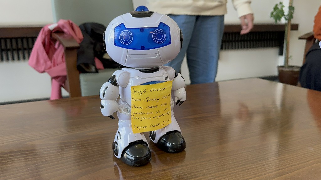 Meryem Nur Tekin “ Sındırgı Marifet okulundan geliyoruz. Depremzede arkadaşlarımız için evden getirilen oyuncaklarımız notlar yazıp onlar için hediye etmeye karar verdik. Arkadaşlarımızla böyle bir şey yaptık. Umarım güle güle kullanırlar, mutlu olurlar. Geçmiş olsun diliyorum tekrardan. Bir an önce hep birlikte atlatacağız inşallah bir daha olmaması dileğiyle “ dedi.