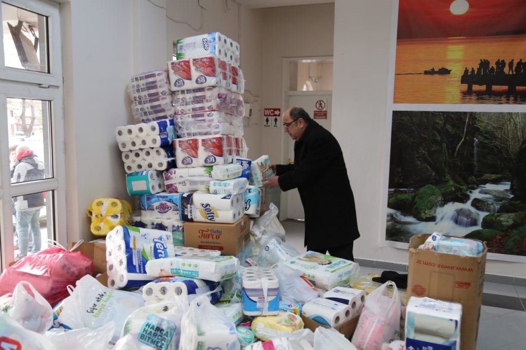 Şükrü Tunar Kültür Merkezi’nde toplanan yardımlar gerekli ayrıştırmaların yapılmasının ardından deprem bölgesine sevk edilecek.