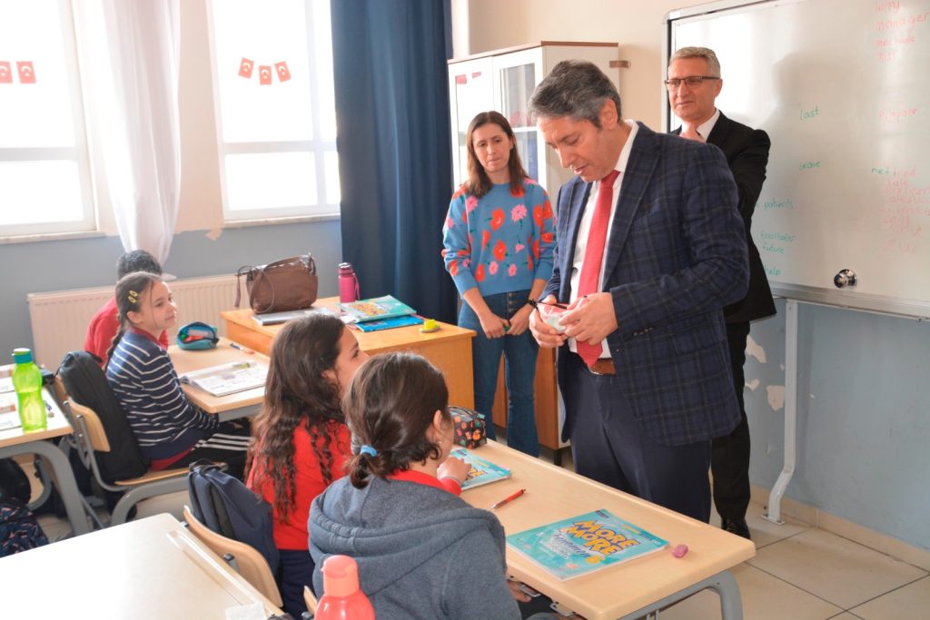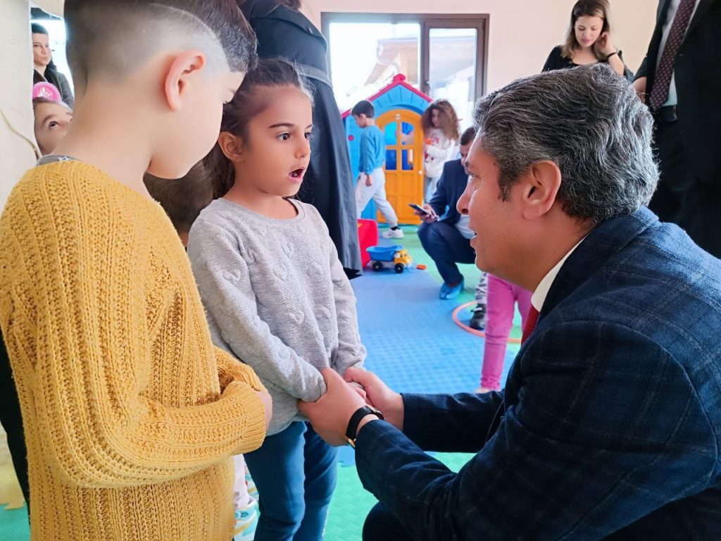 İl Milli Eğitim Müdürü Ali Tatlı; Vali Hasan Şıldak’ın eşi Fatma Nur Şıldak eşliğinde, Edremit’te afet bölgesinden gelen misafir öğrenciler için devlet ve özel sektör iş birliği ile açılan ana sınıfında minik öğrencilerle bir araya geldi.