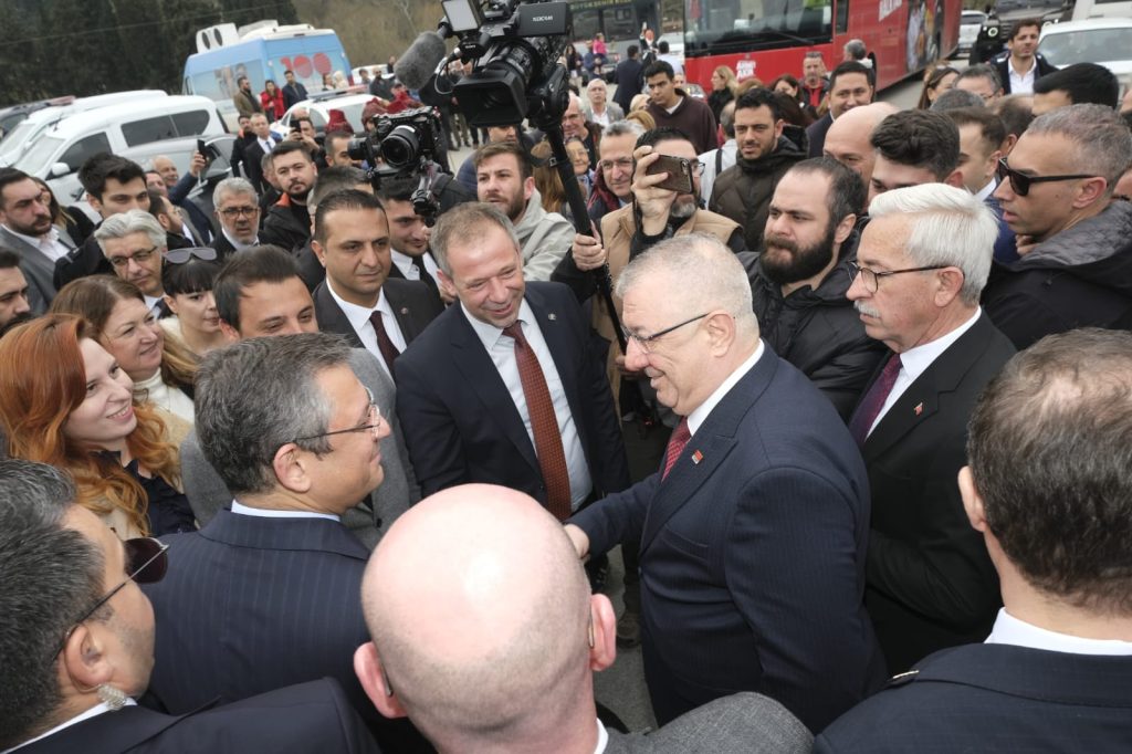 Özel, “Ben burada aday gösterdiğimiz her arkadaşımızın, geçmişte partimizde bu görevi yapmış herkesin işini gücünü bırakıp kentine yoğunlaştığını, kendi gelirini, varlığını, çevresini, partisini zenginleştirmeyi, kendi etrafını zenginleştirmeyi değil kenti güzelleştirmeyi tercih eden namuslu, çalışkan arkadaşlarımızı yürekten tebrik ediyor ve onlara alkış istiyorum. Bizde birileri gibi yolsuzluklar, birtakım örgütlere bağlı olduğu için zorla istifa ettirmeler yok. Göreve getirdiğimiz arkadaşlara, görev verdiğimiz, aday yaptığımız arkadaşlara ne kadar güveniyor ve kefilsek aday adayı olup adaylaştıramadıklarımıza bu görevi yapıp adaylaştıramadıklarımıza da kefiliz. CHP’nin Genel Başkanı olarak bu kefaleti açıkça ortaya koyuyorum. Görevdeyken iyi olmayınca istifa etmeler, başka partiye gitmeler, oradan partiye ateş etmeler. Vallahi 3, 5 kişinin, iktidara yakın gazetelerin manşetine çıkmasının bir önemi yok. 16 bin 500 aday adayı vardı bu partide, 3’ü, 5’i öyle yapıyor ama sabahleyin adaydan erken kalkıp adayı arayıp ‘Hadi çalışmaya gitmiyor muyuz’ diyen aday adayımız. Kendisine ayırdığı bütçeyi ilçe başkanına getiren aday adayımız, kendisine giydirdiği aracı belediye başkan adayıma tahsis eden aday adayımız var bizim. Bizim gönlümüzün manşetinde bu arkadaşlar var, onları yürekten alkışlıyoruz” ifadelerini kullandı.