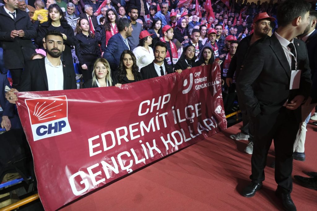 Cumhuriyet Halk Partisi Büyük Balıkesir Buluşması Aday Tanıtım Toplantısı’na CHP Genel Başkanı Özgür Özel, Edremit Belediye Başkan Adayı Mehmet Ertaş’ın özel tasarlanmış atkısı ile salona girdi. Büyük bir coşku ile karşılanan genel başkan konuşma yaparken sözleri ara ara tezahüratlar ile kesildi. Bayram Havasında geçen aday tanıtım toplantısında onbinler Kurtdereli Spor salonuna sığmadı.