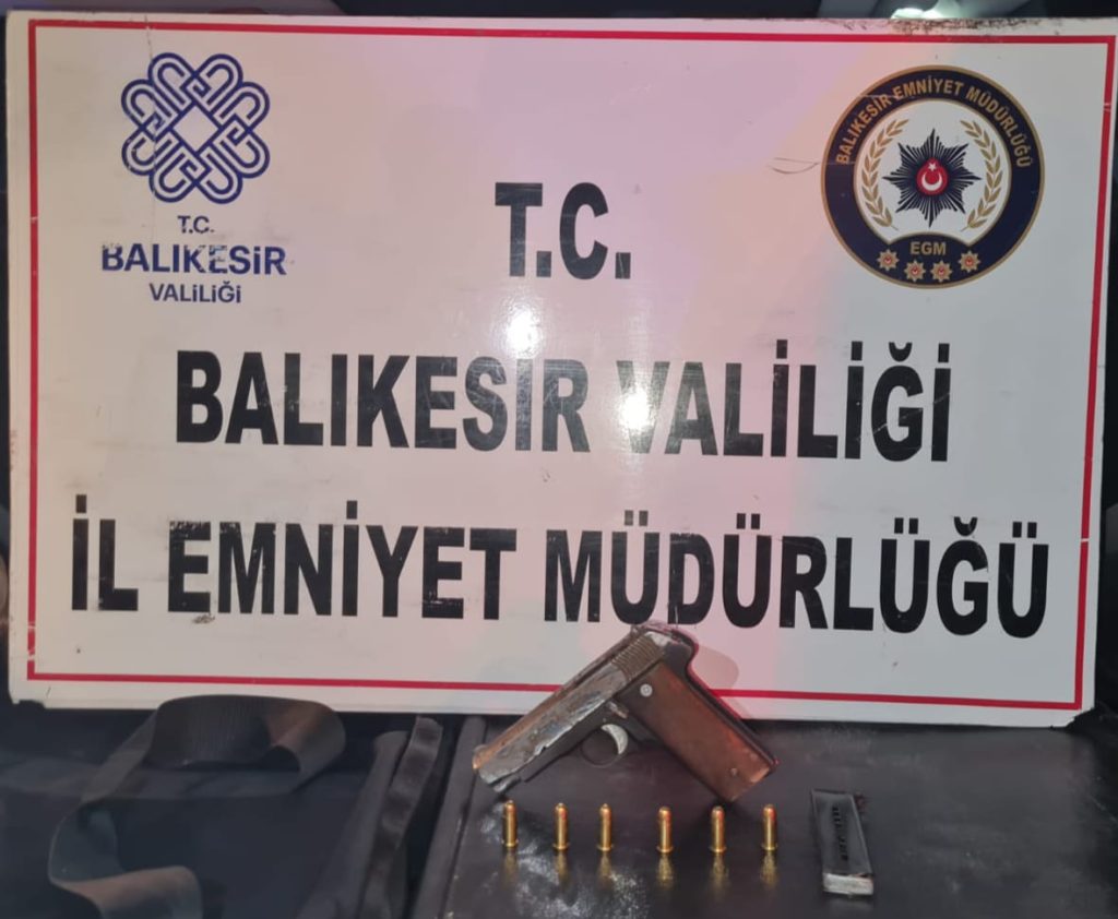 Balıkesir İl Emniyet Müdürlüğünce Asayiş Şube Müdürlüğü, Karesi, Bandırma, Edremit, Erdek, Gömeç, Gönen, Savaştepe ve Susurluk İlçelerinde 22.10.2022 tarihinde yapılan çalışmalarda, 17 aranan şahıs yakalandı, 9 şahıs tutuklandı. Yapılan aramalarda, 4 adet ruhsatsız tabanca, bu tabancaya ait 8 adet fişek, 1 adet ruhsatsız tüfek ele geçirildi.