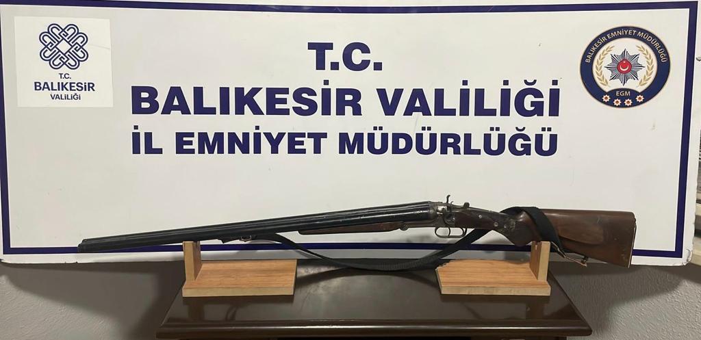 Balıkesir İl Emniyet Müdürlüğünce Asayiş Şube Müdürlüğü, Ayvalık, Bandırma, Burhaniye, Edremit, Erdek ve Susurluk ilçelerinde 21.11.2022 tarihinde 18 aranan şahıs yakalandı, 10 şahıs tutuklandı. Aramalarda, 2 adet ruhsatsız tabanca, 7 adet fişek 1 adet ruhsatsız tüfek ve 1 adet kurusıkı tabanca ele geçirildi.