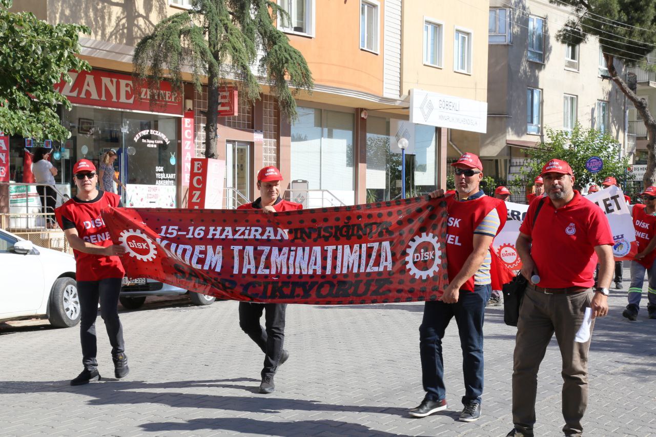 Mitinge katılanlar, “15-16 Haziran’ın ışığında kıdem tazminatımıza sahip çıkıyoruz”, “Belediye şirket işçilerine kadro istiyoruz”, Yoksuldan alıp, zengine veriyorlar, bu düzen değişmeli”, “İnsanca bir yaşam için zamlar geri alınsın, ücretler arttırılsın” pankartları taşıdı.