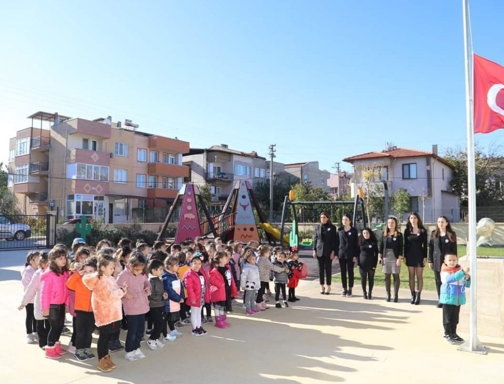 İlk olarak Atatürk’ün ebediyete intikal ettiği saat 09.05’de okullarının bahçesinde bulunan Atatürk büstünde 2 dakika saygı duruşunda bulunan minikler, daha sonra öğretmenlerinin eşliğinde istiklal marşını hep bir ağızdan okudu. Çocuklar tarafından direkte göndere çekilen Türk bayrağı, Atatürk’e yas nedeniyle yarıya indirildi.