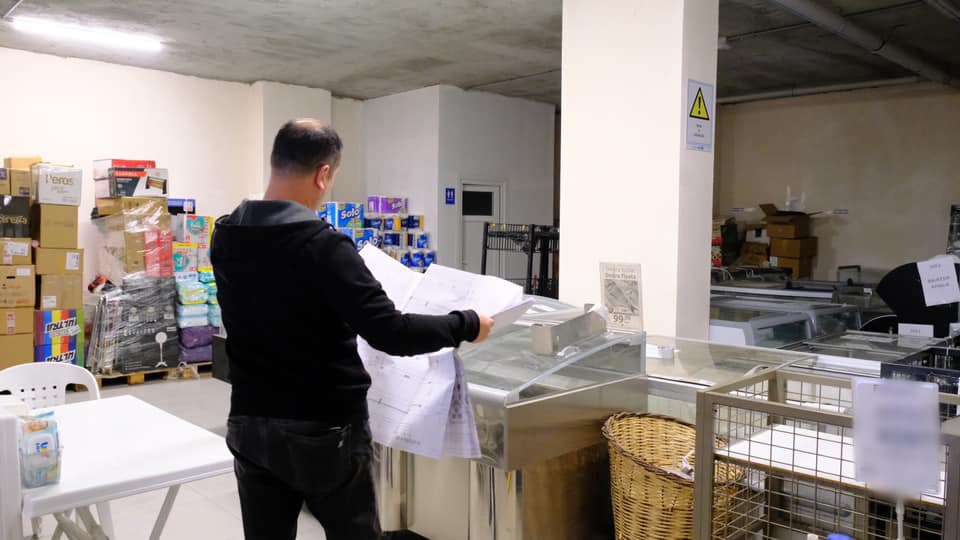 Ayvalık İlçesinde Belediye tarafından marketlerin kolon ve kirişleri kontrol ediliyor.