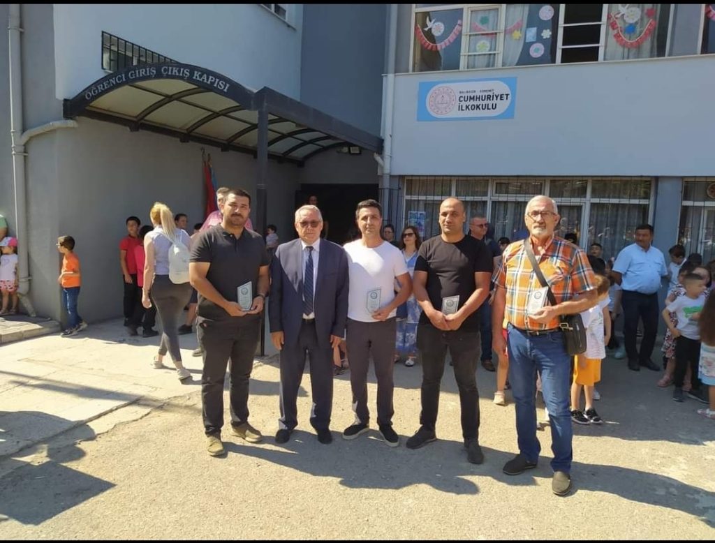 Hayırseverler Süleyman ŞENTÜRK, Erdal BAĞCI, Mustafa BAYRAM, Hüseyin TURAN, Ayhan KARGI’ya plaketleri Okul Müdürü Nahit DENİZ ve Okul Aile Birliği Başkanı Buket ARKAN tarafından verildi.