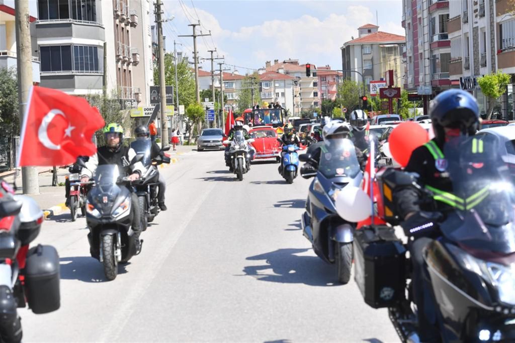 Balıkesir Büyükşehir Belediye Başkanı Yücel Yılmaz, 23 Nisan Ulusal Egemenlik ve Çocuk Bayramı’nı muhteşem bir kortejle kutladı. Şehir protokolü ile birlikte resmi kutlamalara katılmasının ardından Tren Garı önünden 23 Nisan Korteji’ni başlatan Başkan Yücel Yılmaz, önce Vosvos’la Tren Garı arkasındaki yolda tur attı. Vosvos’tan inen Başkan Yılmaz, ailesiyle birlikte korteje katılmaya gelen çocukların bayramını kutlayarak hediyeler verdi. Vosvos’un ardından içerisinde maskotların olduğu, çocuk şarkılarının çaldığı üzeri açık otobüs ile beraberindeki Vosvos’lar, motosikletler ve bisikletlerle şehir turuna devam eden Başkan Yücel Yılmaz; çocukların bayram sevincine ve heyecanına ortak oldu. Korteji görmek için pencerelere ve balkonlara çıkan çocukların bayramını kutlayan Başkan Yılmaz, şehirde bayram coşkusunun en güzel haliyle yaşatılmasını sağladı.