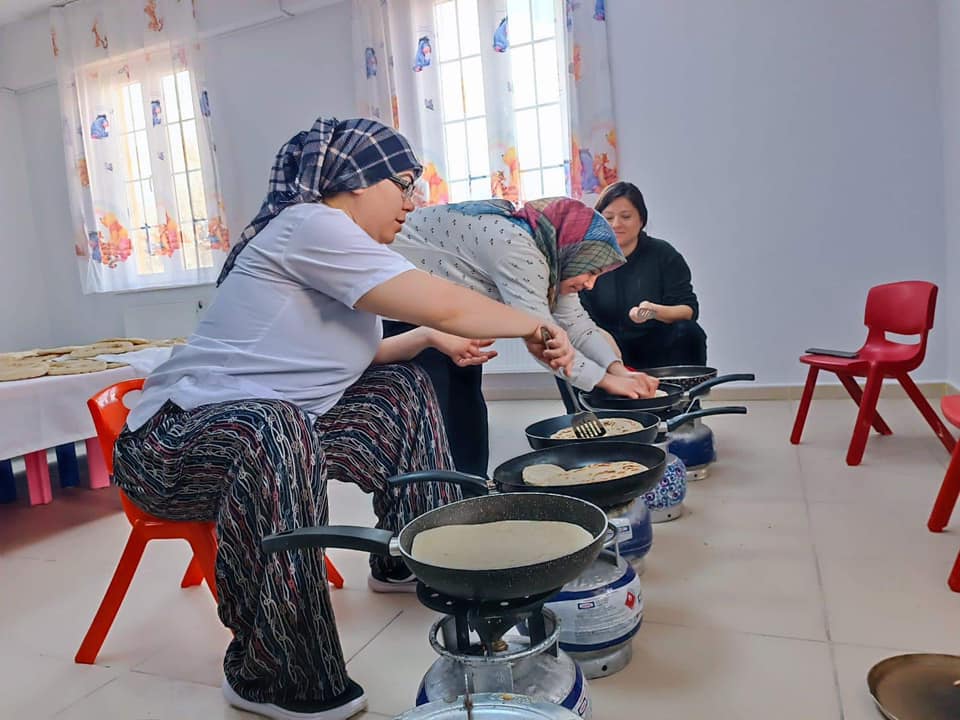 Balıkesir’in Edremit İlçesinde öğretmen ve veliler tarafından bazlama üretimi yapılarak deprem bölgesine gönderildi.