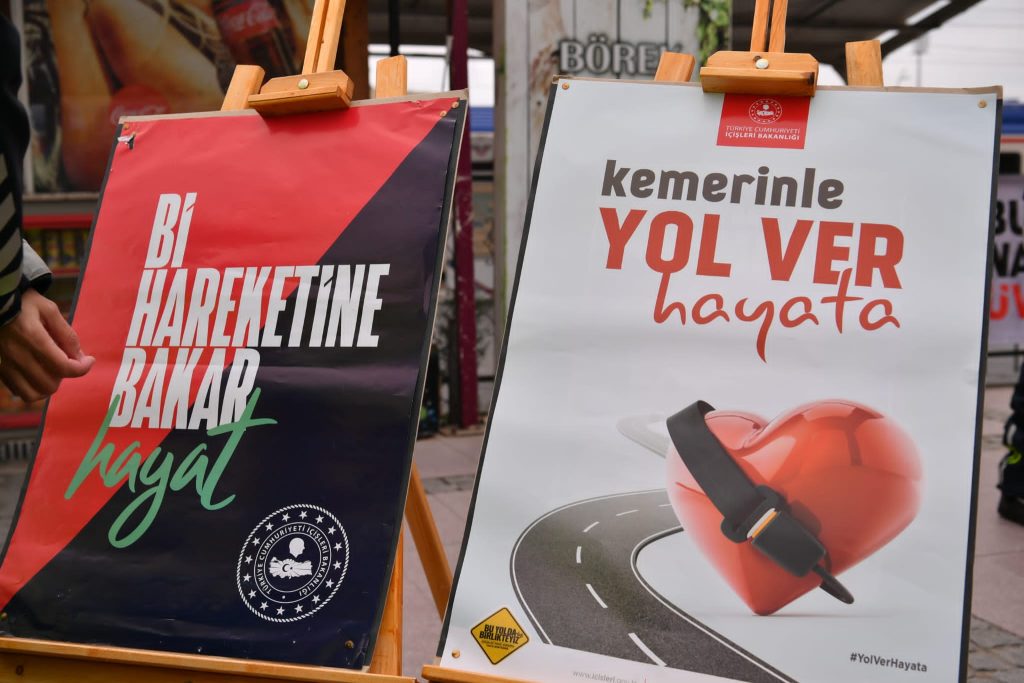 06-12 Mayıs Karayolu Trafik Haftası Etkinlikleri kapsamında trafik düzeni ve güvenliğinin sağlanması, trafik kurallarına uyulması yönünde toplumsal farkındalığın arttırılması amacıyla gerçekleştirilen programda, sergilenen görsel ile trafik materyallerinin bulunduğu stantta sürücü ve yayalara yönelik eğitim ve bilgilendirme yapıldı.