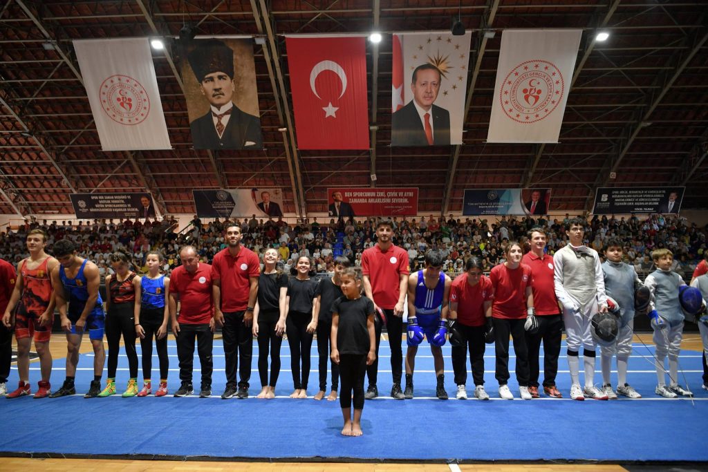 Konuşmaların ardından sporcuların çeşitli branşlarda yaptığı gösteriler ilgiyle izlendi. Programda Yaz Spor Okullarına katılan çocuk ve gençlere şort, tişört ve antrenman filesi dağıtımı gerçekleştirildi.
